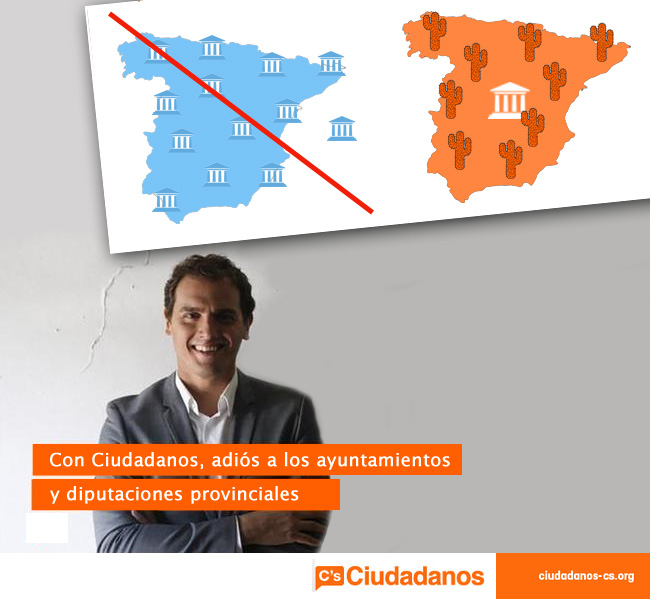 En la campaña anterior a las elecciones del 20-D, el principal mensaje lanzado por el partido de CIUDADANOS, fue el de suprimir las DIPUTACIONES PROVINCIALES, aunque curiosamente nada decían sobre los SIETE CABILDOS insulares y los TRES CONSEJOS baleares, junto con las DIPUTACIONES VASCAS y NAVARRA, cuando estas gestionan similares competencias, y no cabe defender ningún tipo de singularidad, como no sea la de fomentar mas desigualdad entre los habitantes del medio rural, cuando todas ellas están integradas en el actual ESTADO DE LAS AUTONOMIAS.