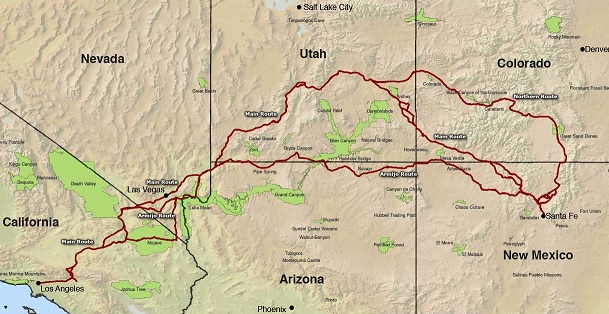 El Viejo Sendero de los Españoles, para quienes no hallan oído hablar de él, fue iniciado su trazado por los franciscanos Francisco Atanasio Dominguez y Silvestre Vélez de Escalante, que en 1776 salieron de Santa Fe, para después de salvar el Gran Cañón del Colorado, por el norte de Arizona, pasar por Colorado, Utah, Nevada y California, comunicando, por primera vez, Santa Fe con el mercado exterior, a través de los puertos de Califonia, terminando así su aislamiento. Al norte de Arizona existe un paraje natural dedicado también a estos franciscanos, sobre una zona de una riqueza geológica excepcional.