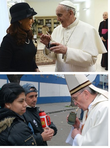 El Papa Bergoglio bebiendo mate con ricos y pobres |